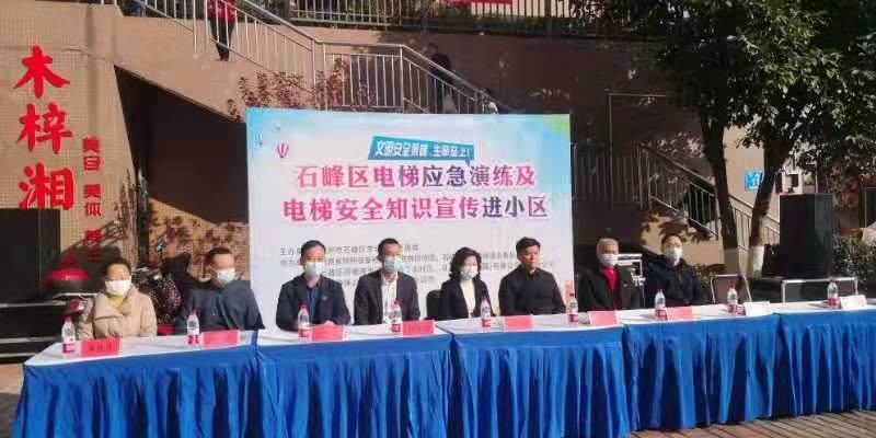 12月18日上午,石峰区市场监督管理局牵头,联合铜塘湾街道办事处、省特检院株洲分院等单位在石峰区都市兰亭小区开展电梯应急演练及电梯安全知识宣传进小区活动。市委两新工委副书记欧阳荣,区委常委、组织部长周天浩,区人民政府副区长钟富强,区委组织部副部长刘星明等领导出席活动。