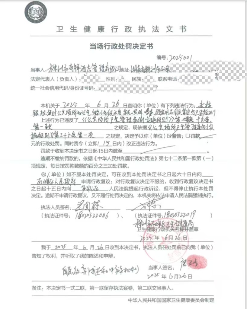 株洲市奇祥酒店管理有限公司未按照规定对公共场所顾客用品用具进行卫生检测案