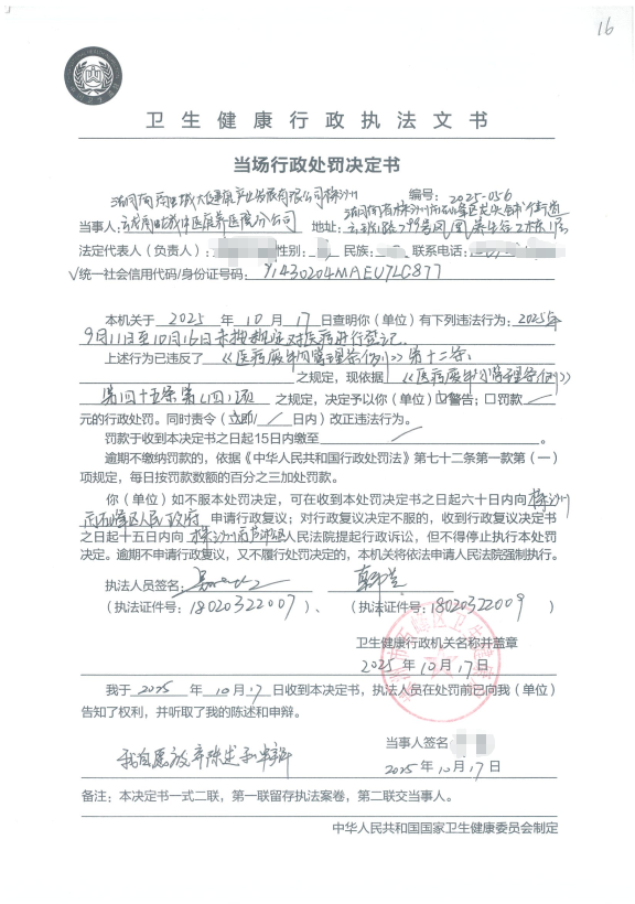 湖南融城大健康产业发展有限公司株洲融城中医康养医院分公司未按规定对医疗废物进行登记案