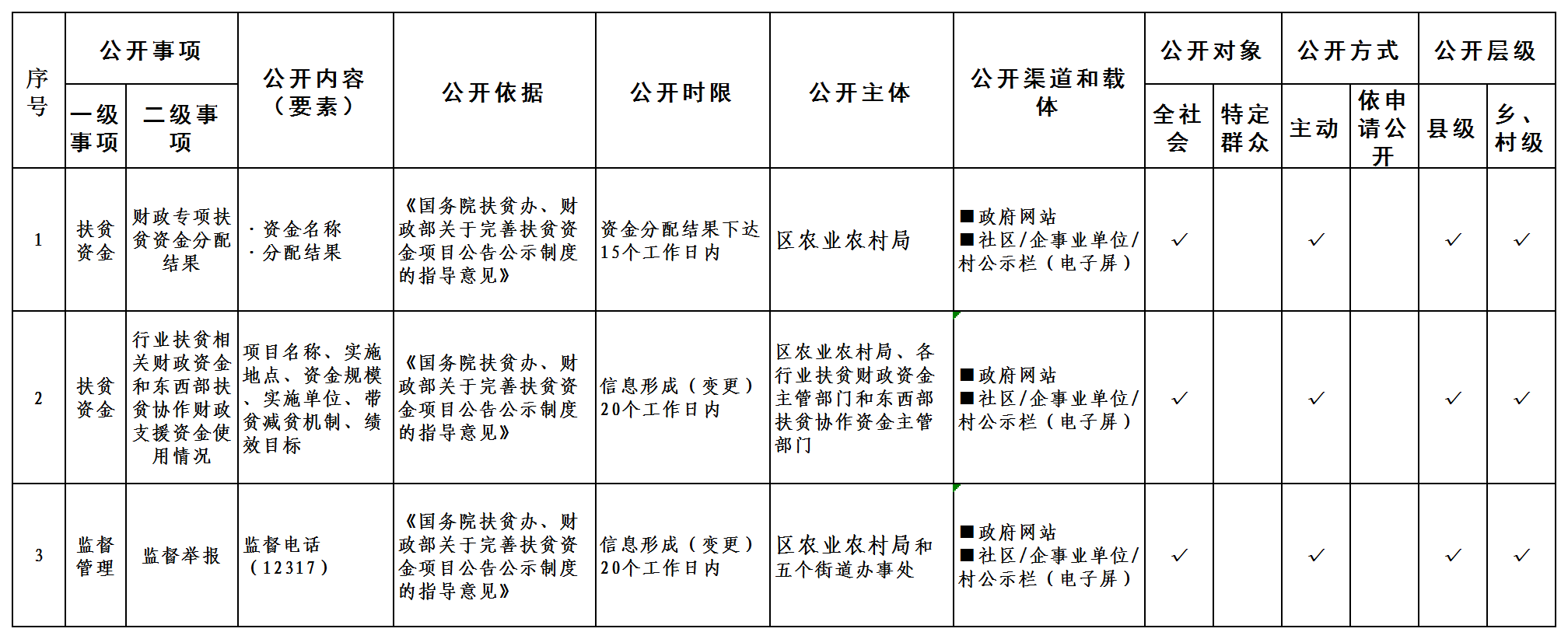 扶贫领域基层政务公开标准目录