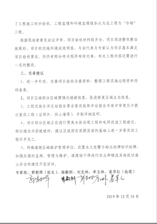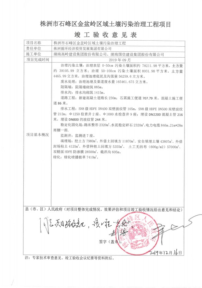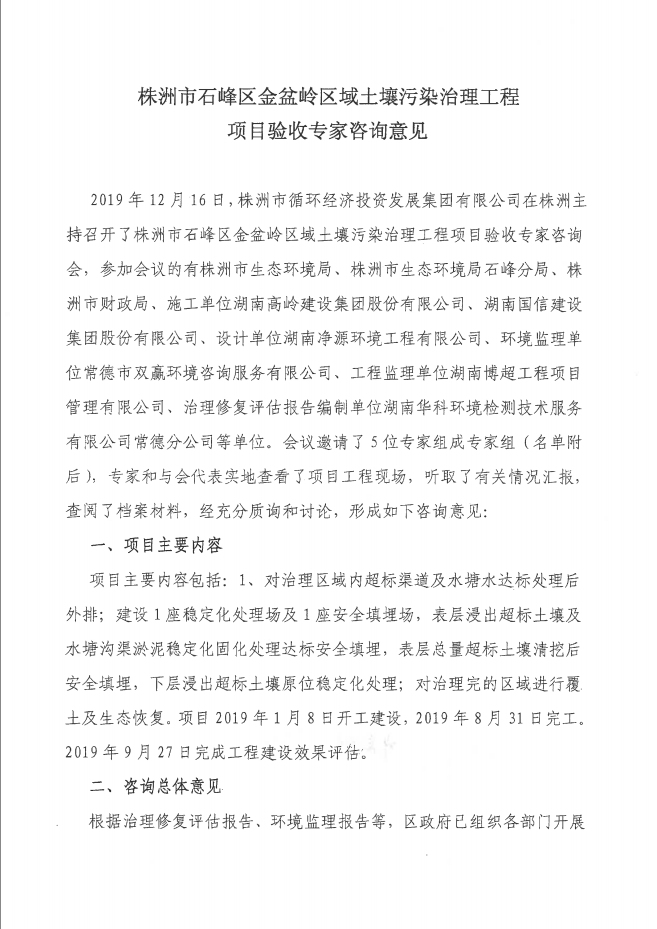 株洲市石峰区金盆岭区域土壤污染治理工程项目竣工验收意见表及专家咨询意见