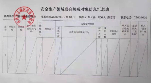 安全生产领域联合惩戒对象信息