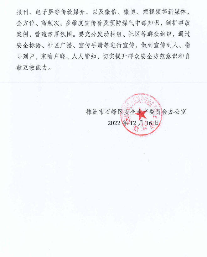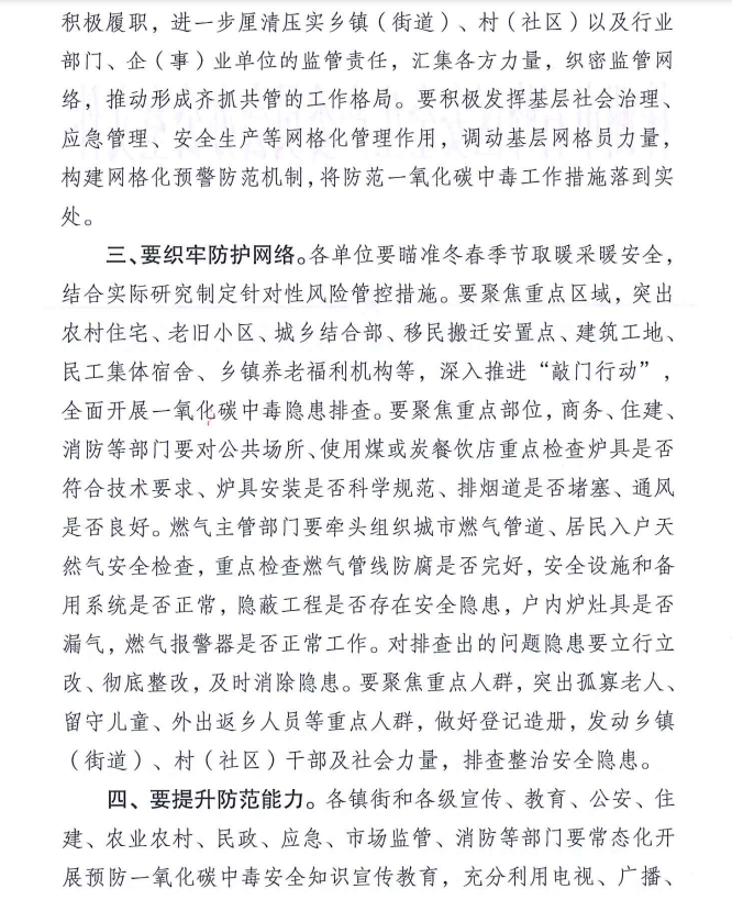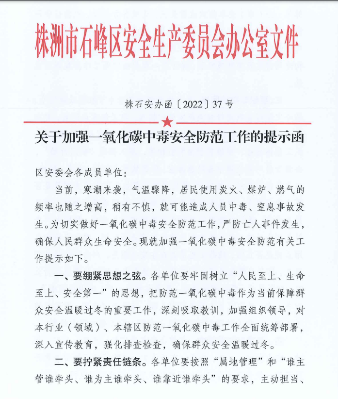 关于加强一氧化碳中毒安全防范工作的提示函