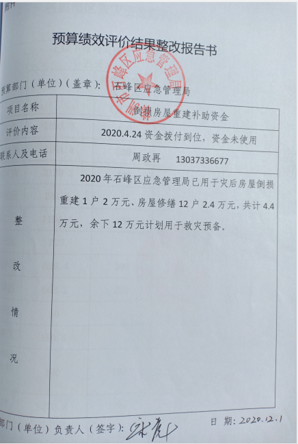 2020年倒损房屋重建补助资金绩效评价报告反馈