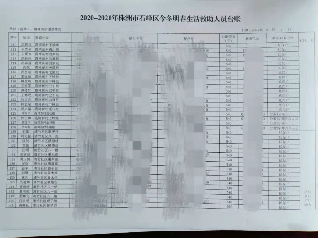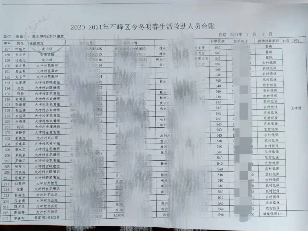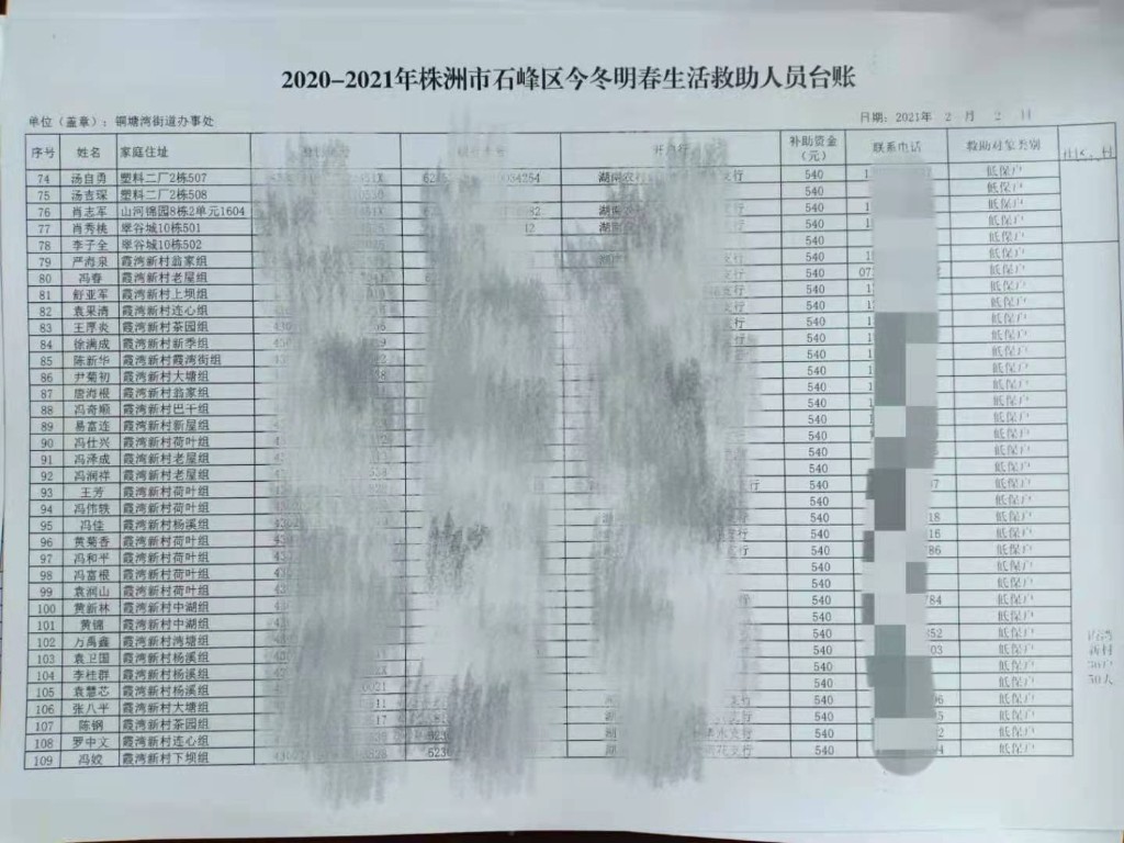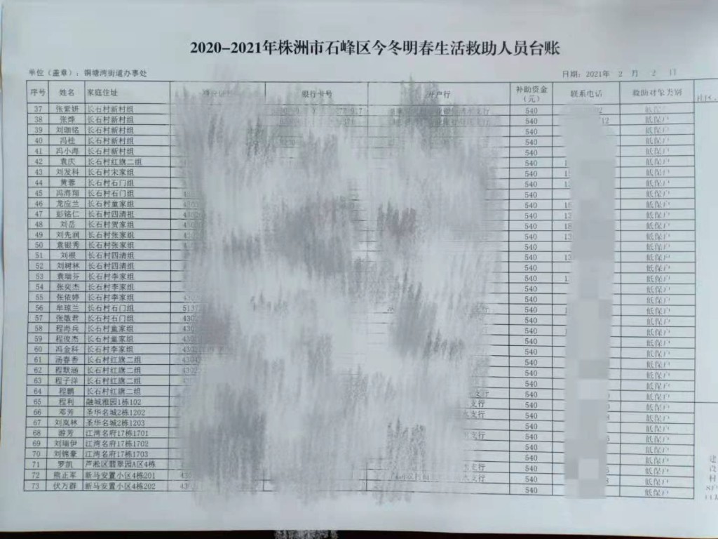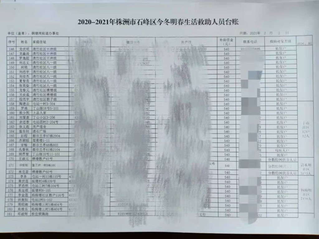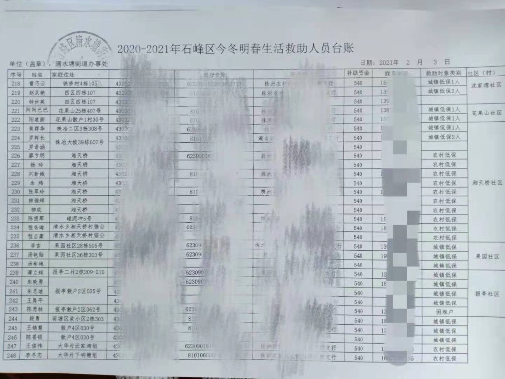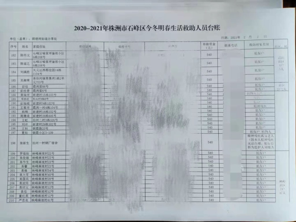 2020-2021年株洲市石峰区今冬明春生活救助人员台账