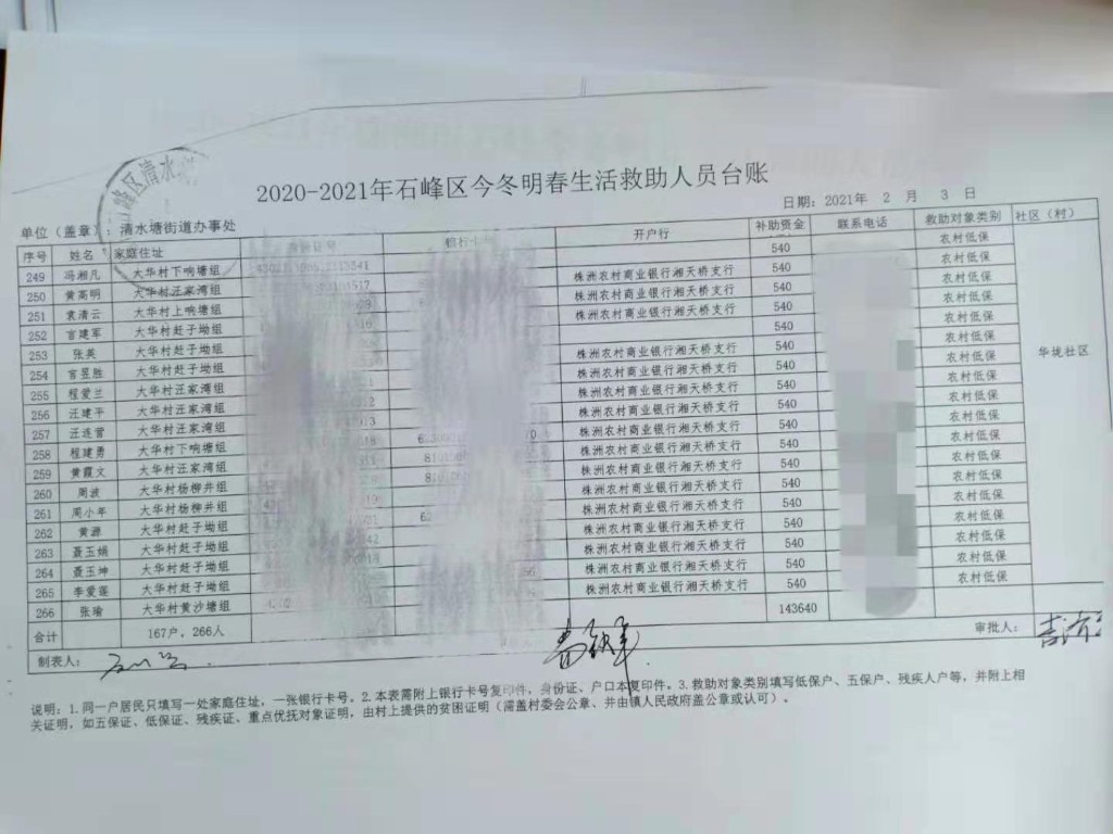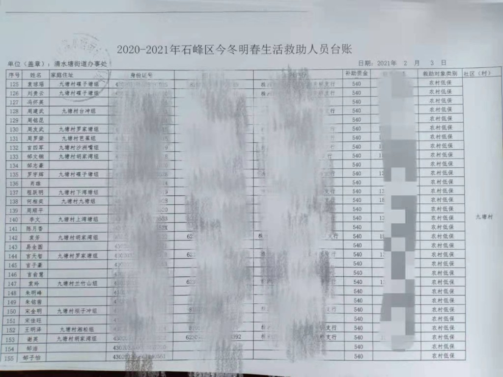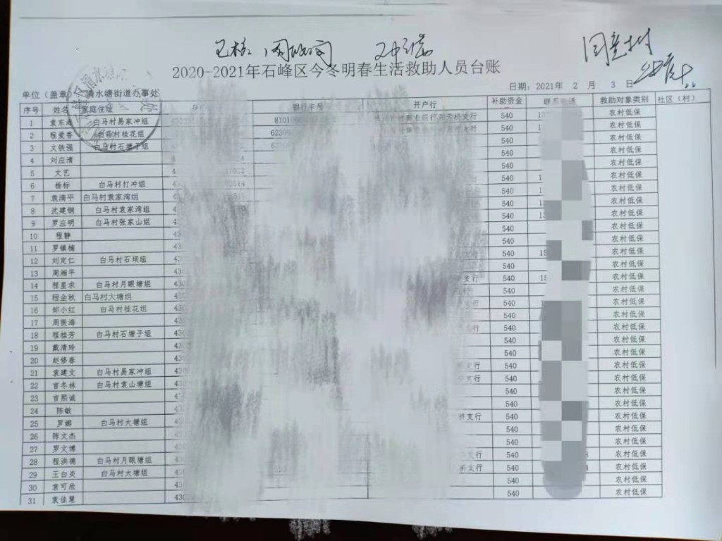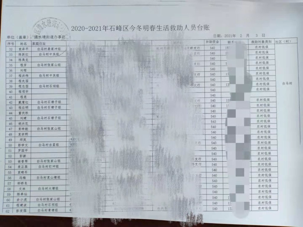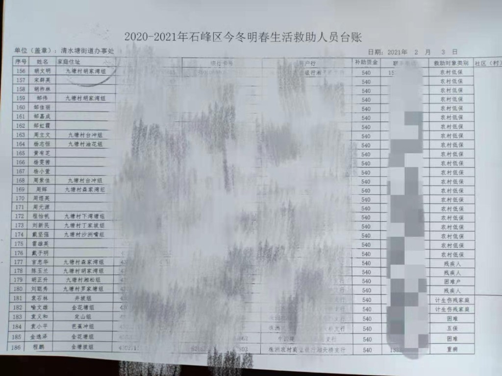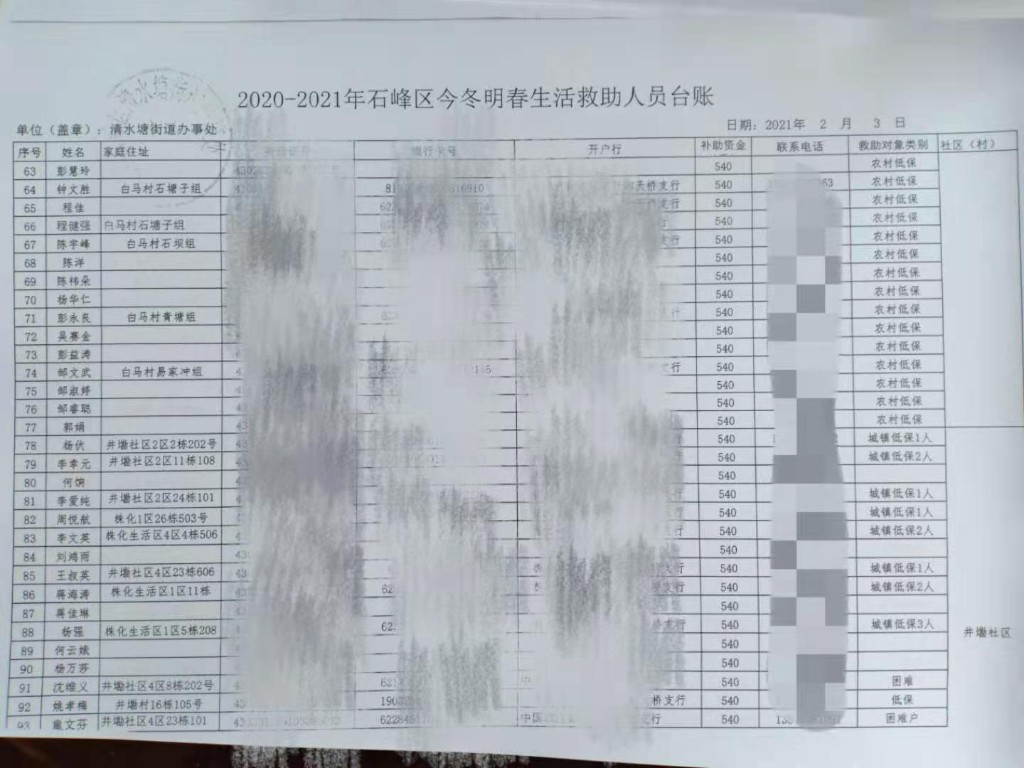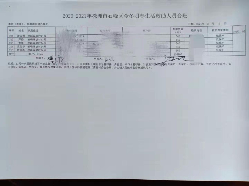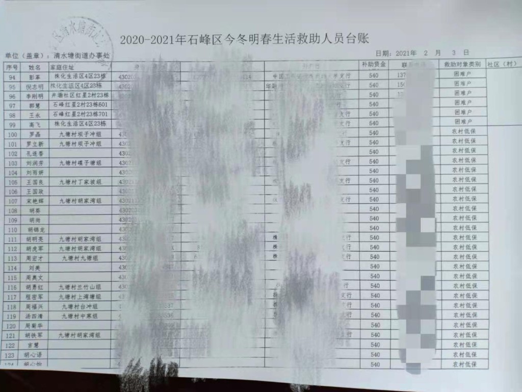 2020-2021年株洲市石峰区今冬明春生活救助人员台账