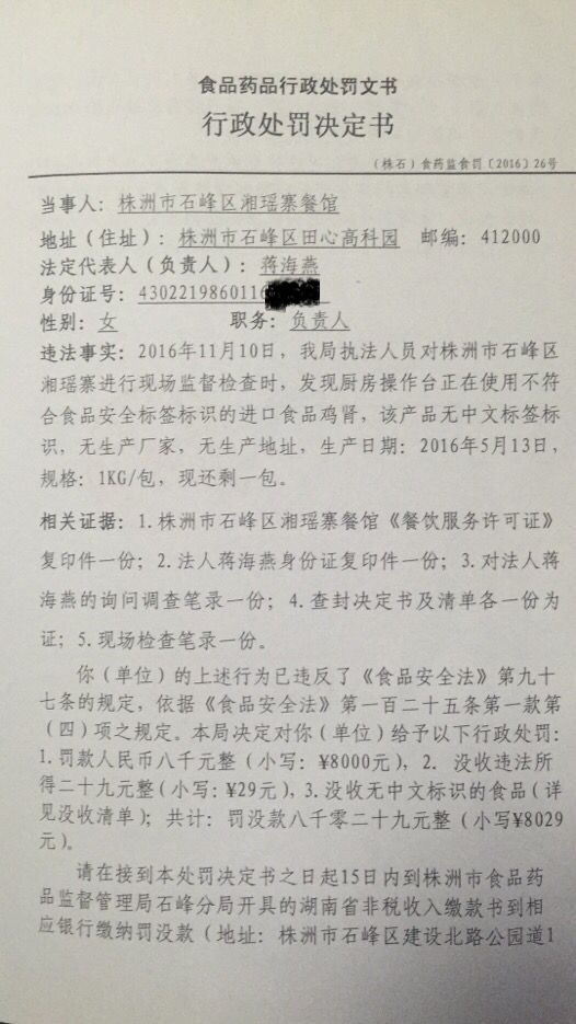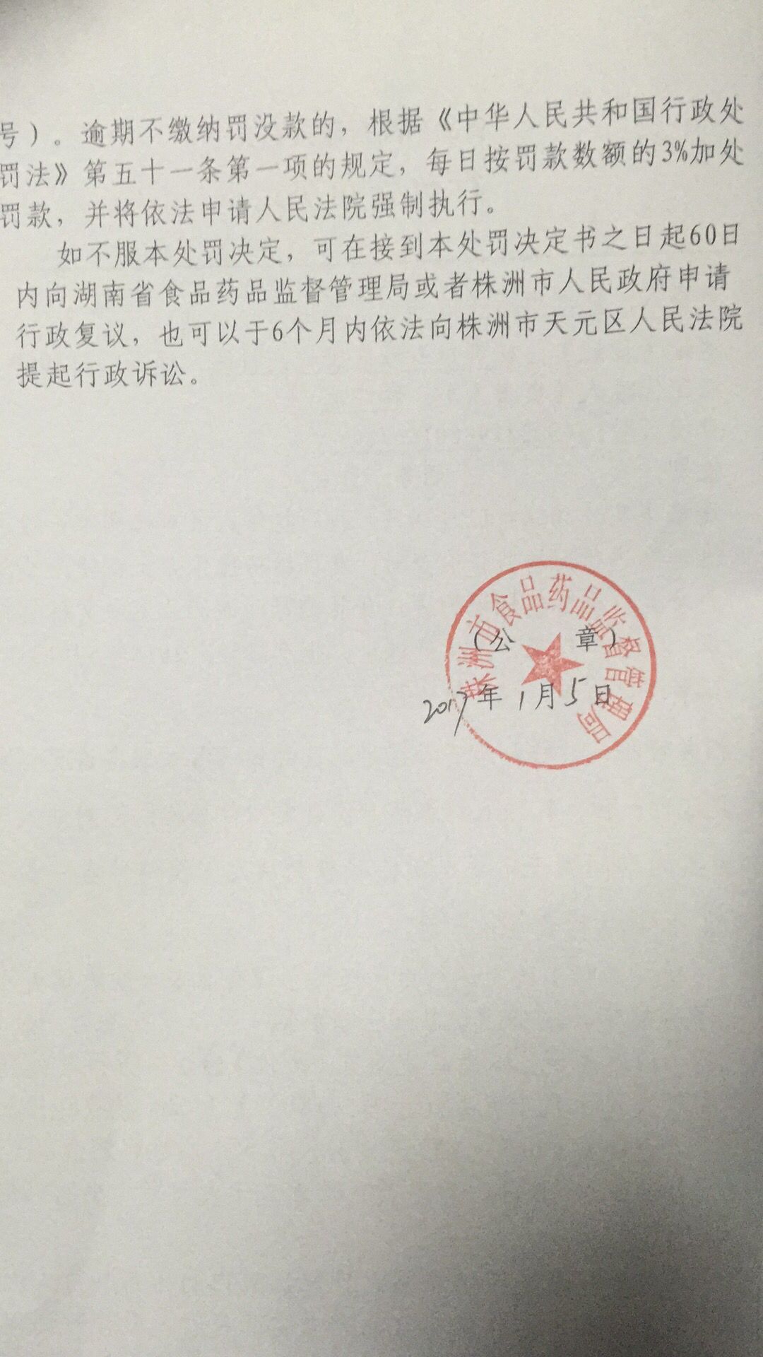 株洲市食品药品监督管理局石峰分局行政处罚公开(株石食药监食罚〔2016〕26号 )