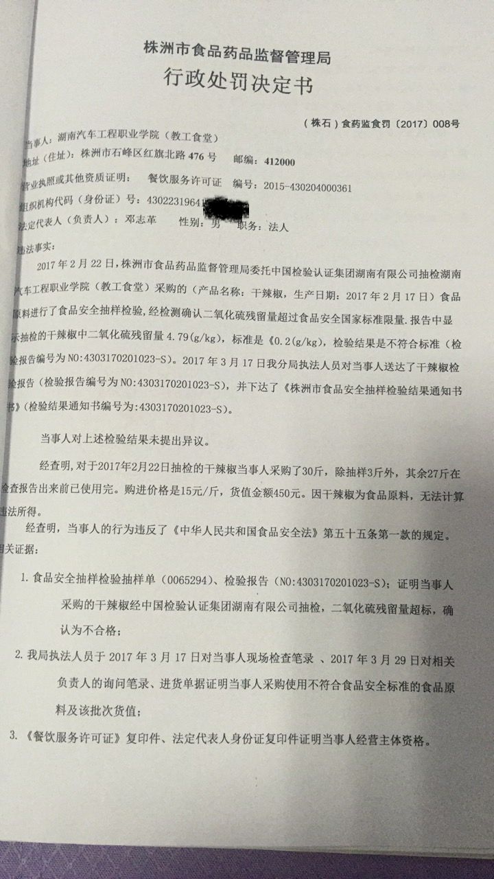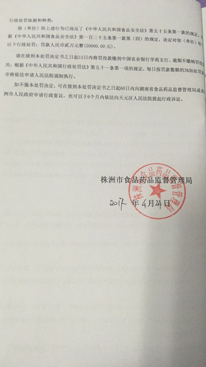 株洲市食品药品监督管理局石峰分局行政处罚公开(株石食药监食罚〔2017〕008号 )