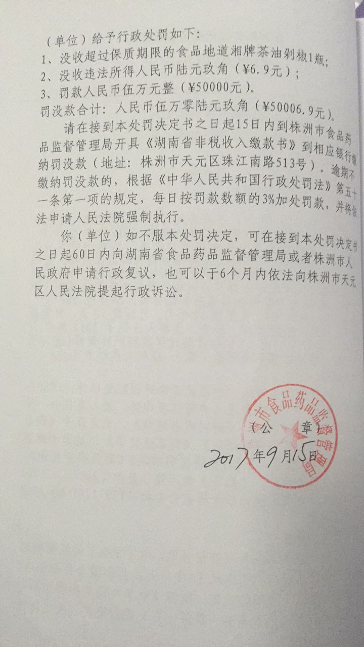 株洲市食品药品监督管理局石峰分局行政处罚公开(株石食药监食罚〔2017〕20号 )