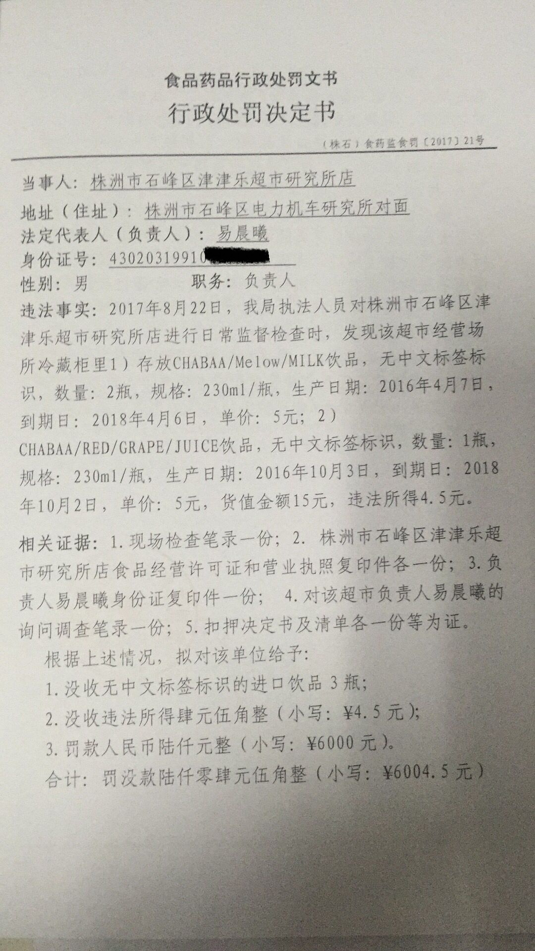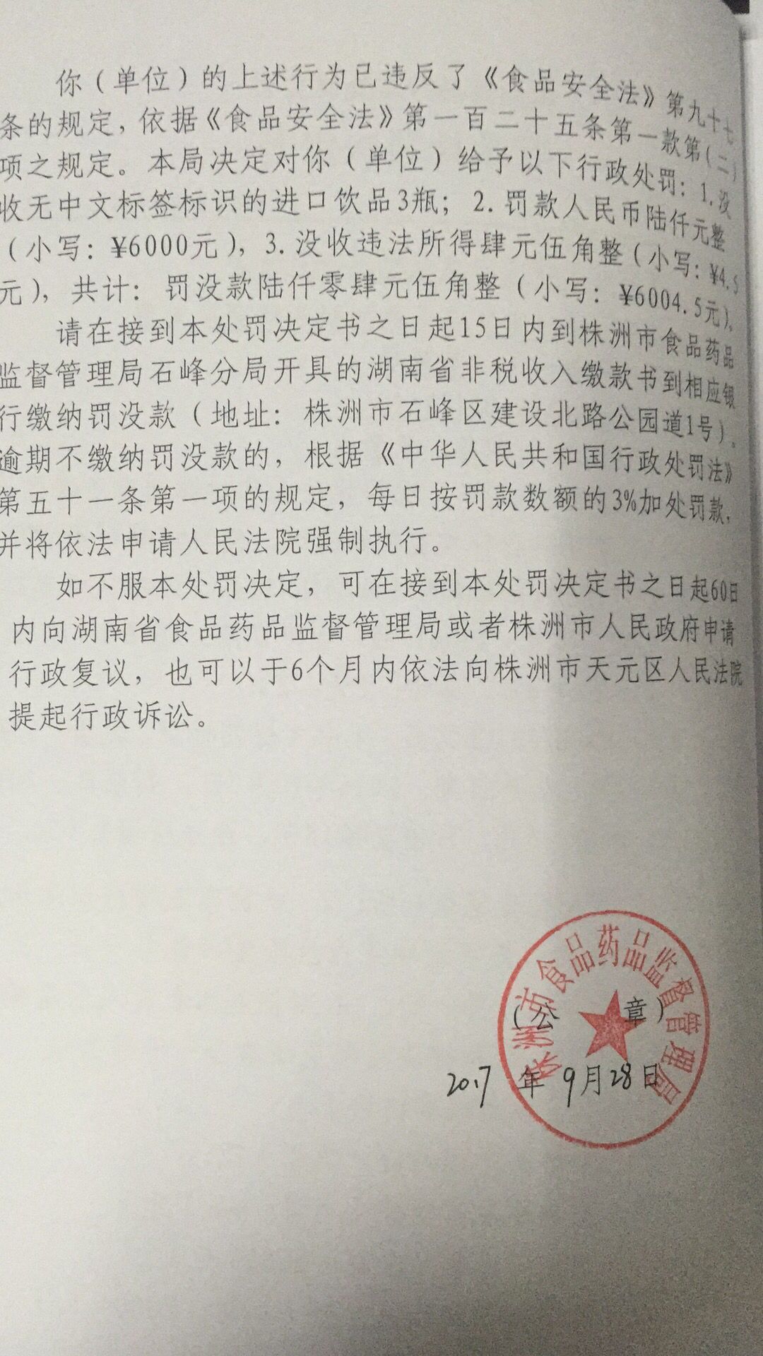 株洲市食品药品监督管理局石峰分局行政处罚公开(株石食药监食罚〔2017〕21号 )