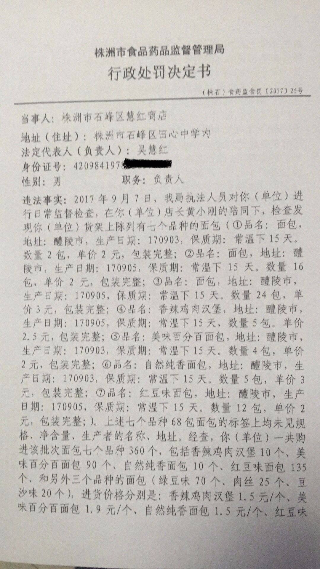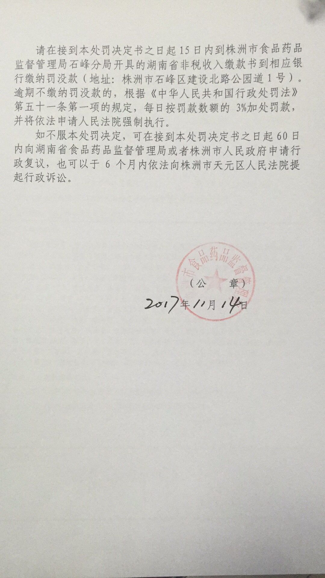 株洲市食品药品监督管理局石峰分局行政处罚公开(株石食药监食罚〔2017〕25号 )