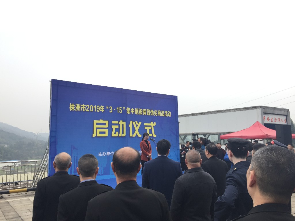 与此同时,全市假冒伪劣商品集中销毁活动正在石峰区金利亚环保科技有限公司进行。活动现场,装满假冒伪劣商品的货车多达29辆。主要涉及假冒湘窖、洋河等名酒4000瓶,假冒名酒包装10000个,非法生产、销售的化妆品及原料、设备、包材1000瓶,假劣化妆品2000盒,假劣西药、中成药20000盒,假劣食品和保健食品200盒,问题水8000余包,假冒海飞丝、潘婷、飘柔洗发水3000瓶,伪劣内衣1100件,假多乐士涂料35桶,假私烟30839条,烟叶、烟丝117.8吨。据统计,此次集中销毁的假冒伪劣商品货值金额达2000余万元。