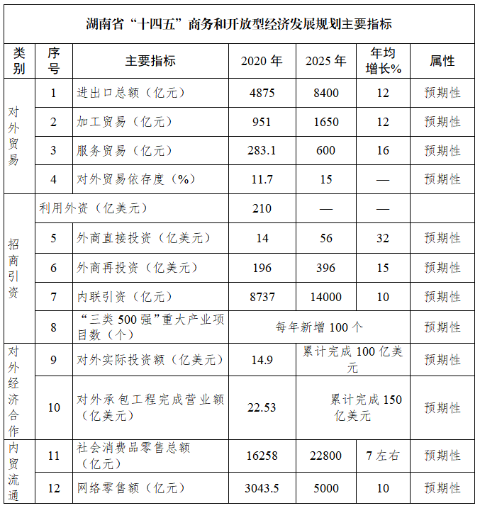 湖南省“十四五”商务和开放型经济发展规划