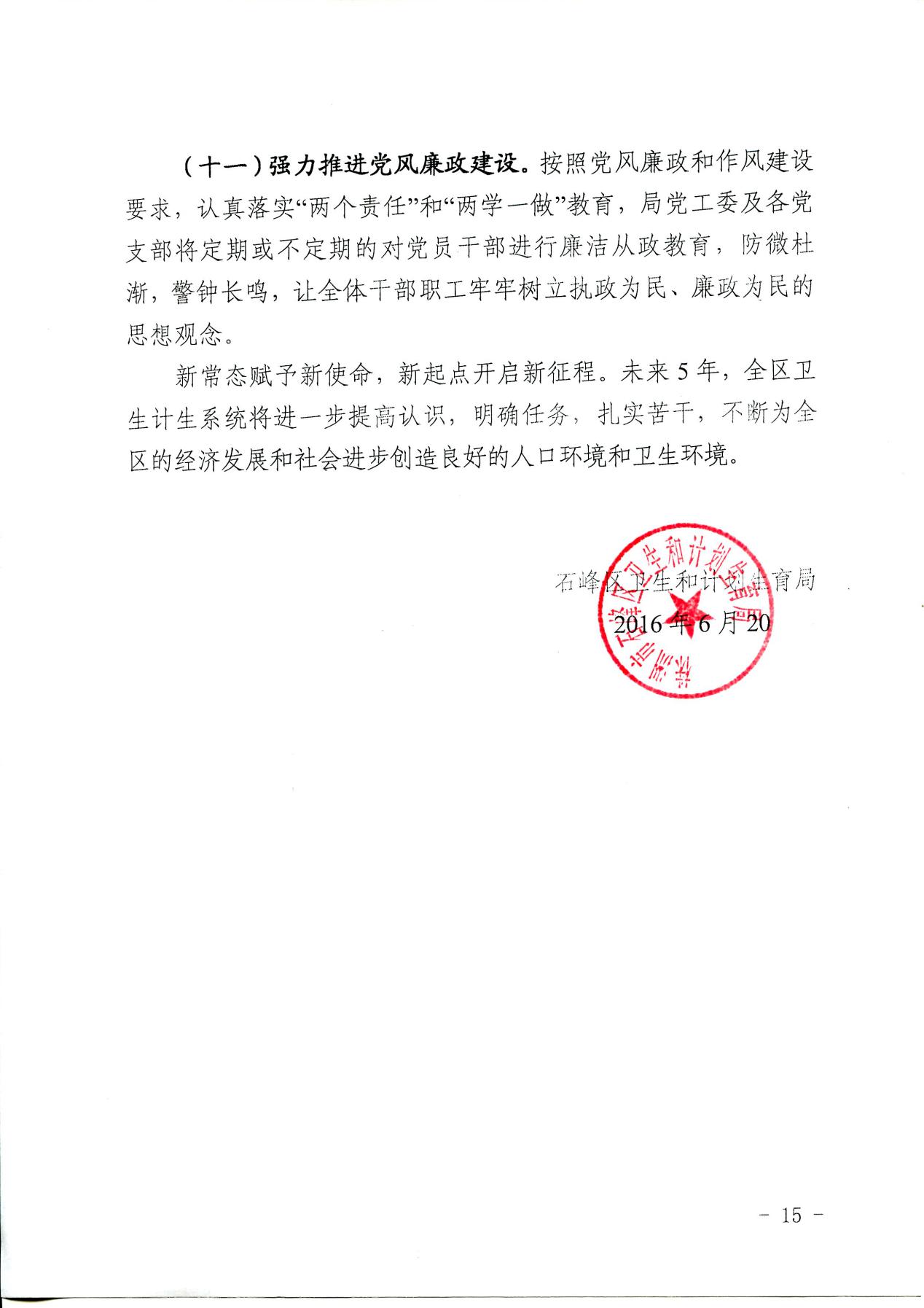 石峰区卫计局“十二五”回顾和“十三五”展望