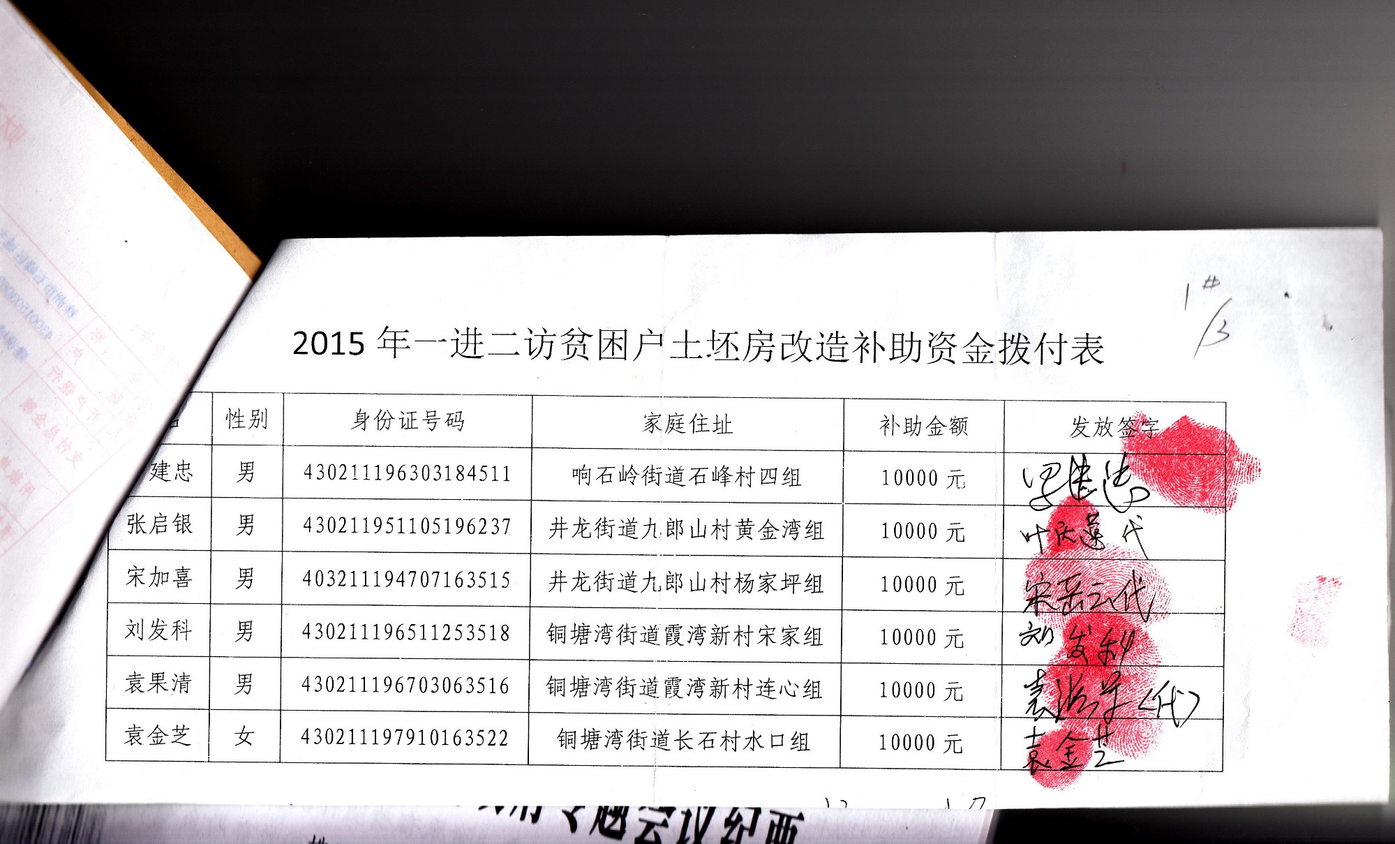 株洲市石峰区城乡建设局2015年“一进二访”贫困户土坯房改造补助资金公开