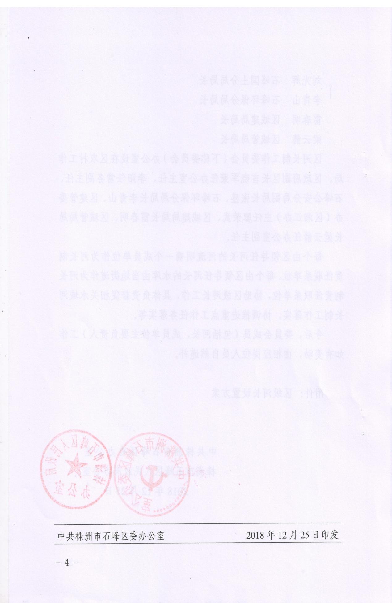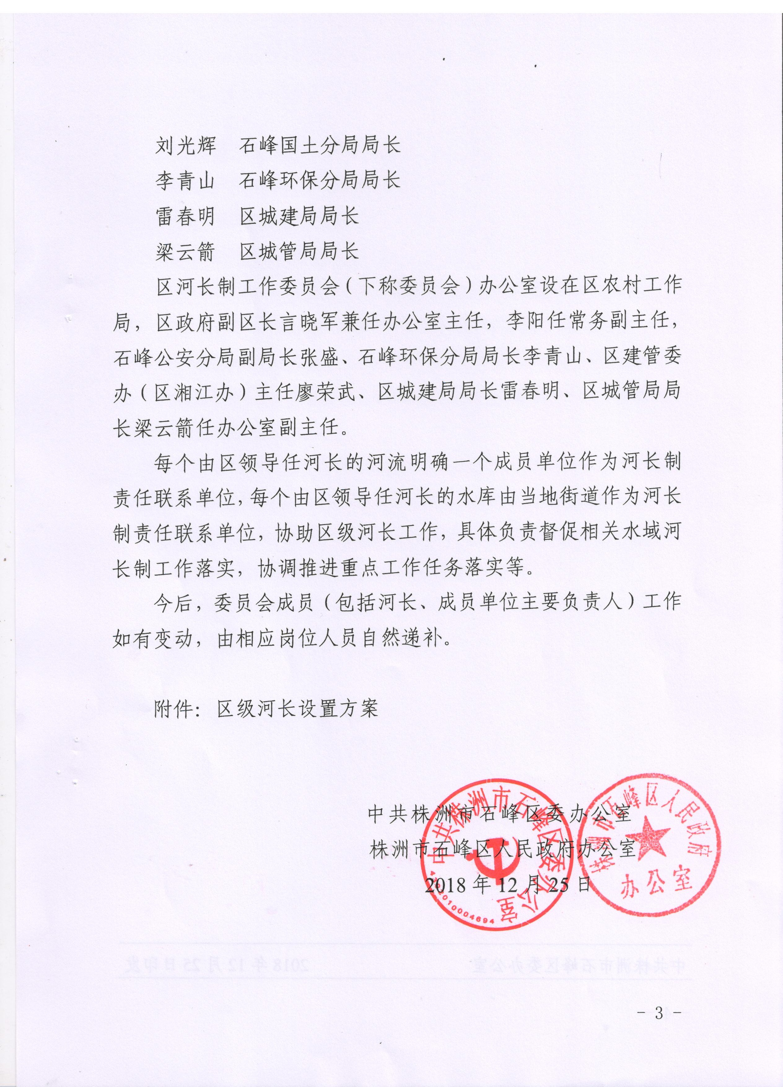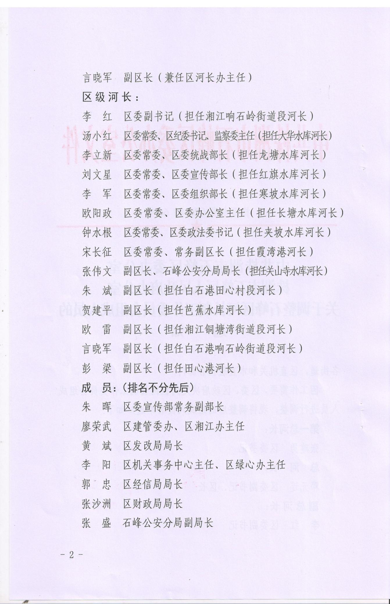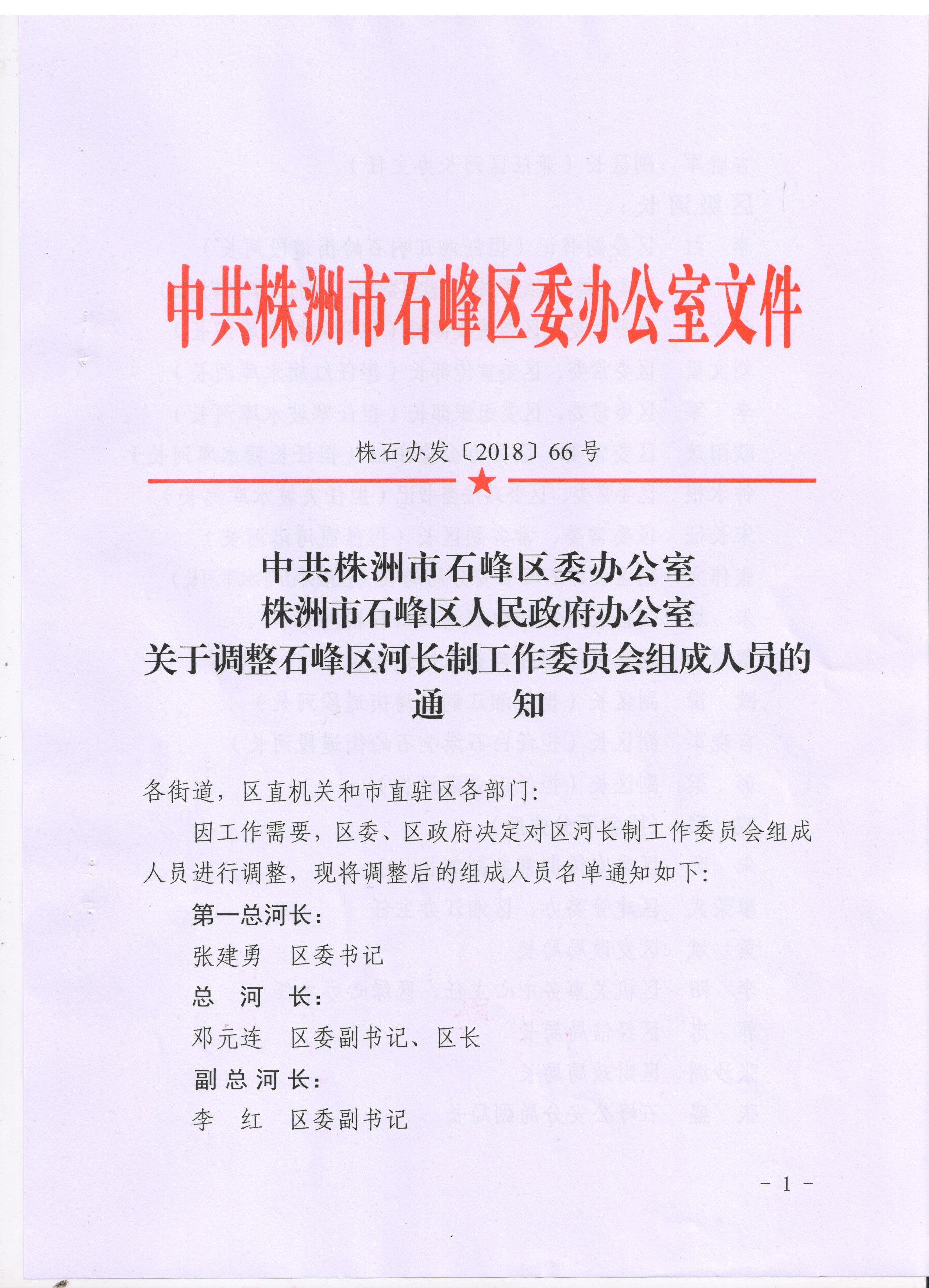 株洲市石峰区人民政府办公室关于调整石峰区河长制工作委员会组成人员的通知