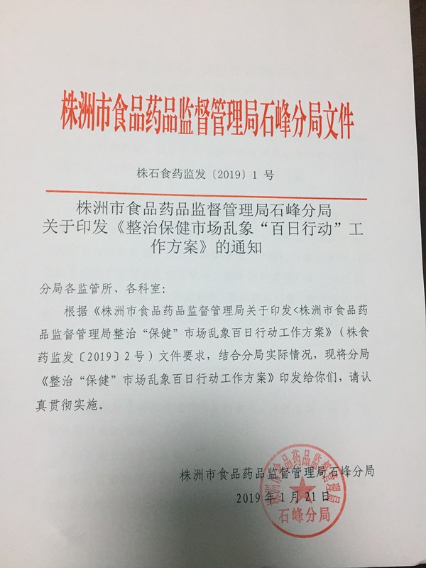 (一)提高政治站位,切实加强领导。“保健”市场乱象是长期存在的顽疾,社会反响强烈,广大人民群众深恶痛绝。虽然近年来查处了一批“保健”市场虚假宣传、消费欺诈等违法行为,取得了一定实效。但也要看到,一些严重违法行为时有发生,严重扰乱市场秩序,严重影响人民群众健康安全,人民群众渴望整治“保健”市场乱象心情急迫。充分认识开展“百日行动”的重大意义,进一步提高政治站位,增强“四个意识”,坚决做到“两个维护”,切实增强开展“百日行动”的紧迫感和使命感,要以对人民群众高度负责的态度,切实把“百日行动”作为当前的工作重点抓紧抓好。要坚持统一领导、统一行动、综合治理、行业自律、社会监督的工作原则,坚决打赢这场攻坚战。