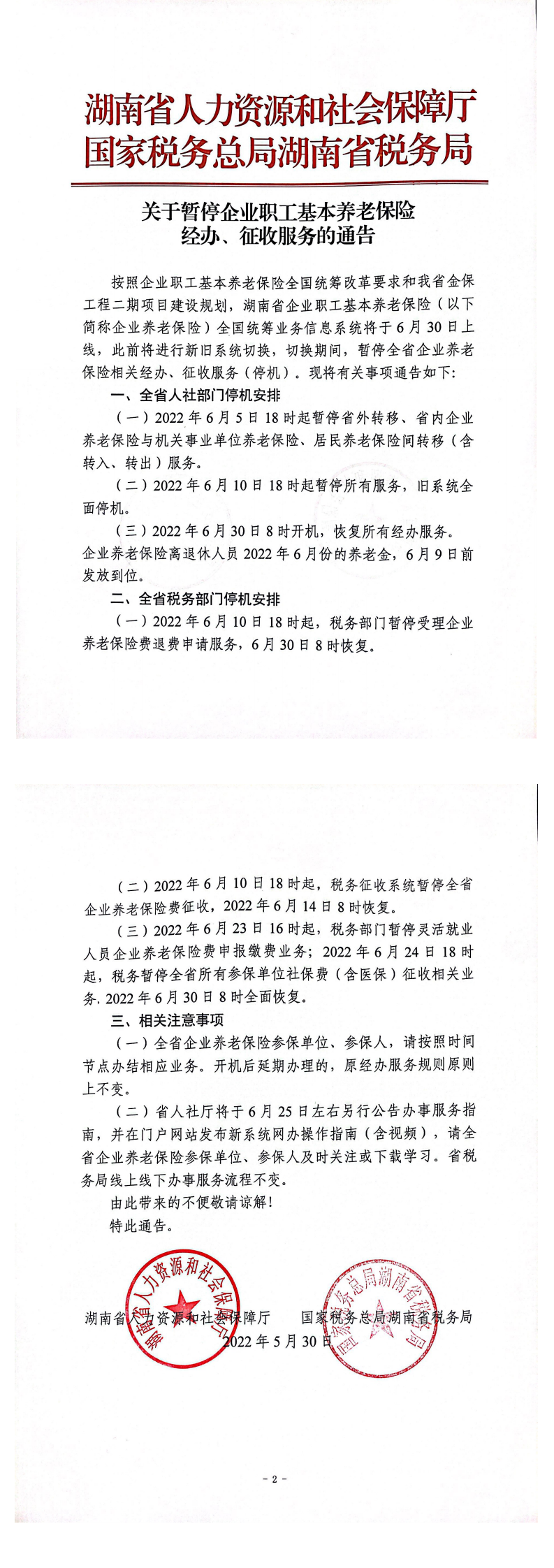 关于暂停企业职工基本养老保险经办、征收服务的通告