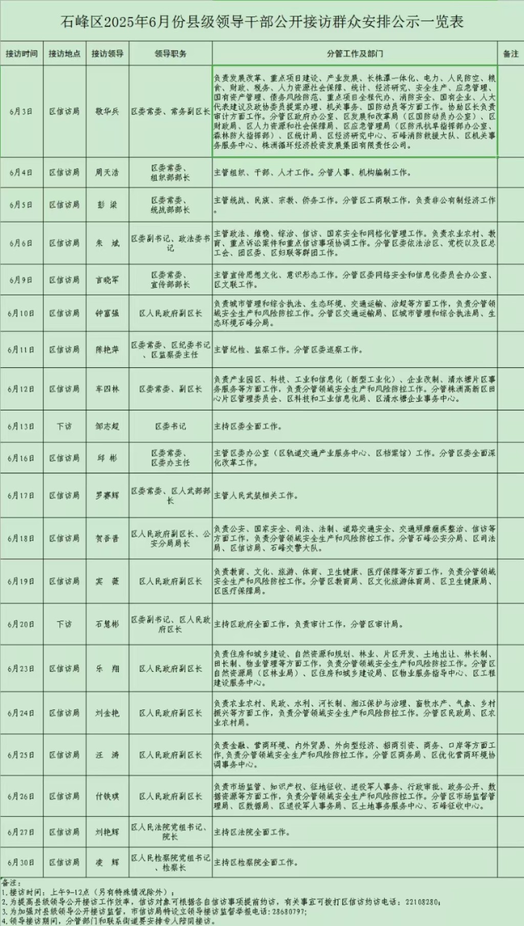 为进一步密切联系群众,畅通信访渠道,依法及时就地解决群众合理诉求,从2022年3月1日开始,建立领导预约接访制度,每个工作日由县级领导轮流到信访部门定期公开接访。现将2025年6月份县级领导接访安排公示如下。
