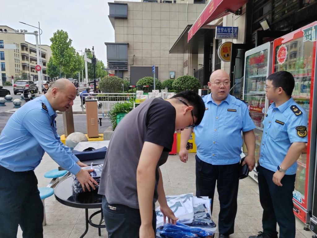 本次行动共摸排检查门店6家,其中2家门店存在问题。执法人员现场依法下达责令改正通知书2份,并扣押涉嫌假冒伪劣校服95件(均为“三无”产品)。经现场清点,该批校服包括:蓝白拼色夏装短袖13件、宝蓝色夏装短袖25件、藏蓝色夏装长裤13件、藏蓝色夏装短裤26件、春秋套装18件。经校方确认,上述校服在标识、布料及样式等方面与该校正品校服高度相似,且其生产销售行为未获该校授权。目前,该案件正在进一步调查处理中。