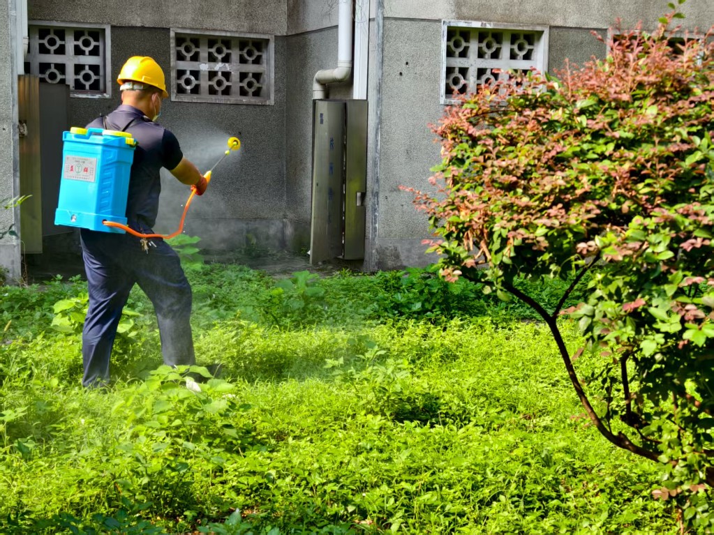 消杀工作人员在社区网格员的带领下开展消杀工作;物业公司主动加强对绿化带、公共楼道的消杀工作,与网格员宣传形成互补。