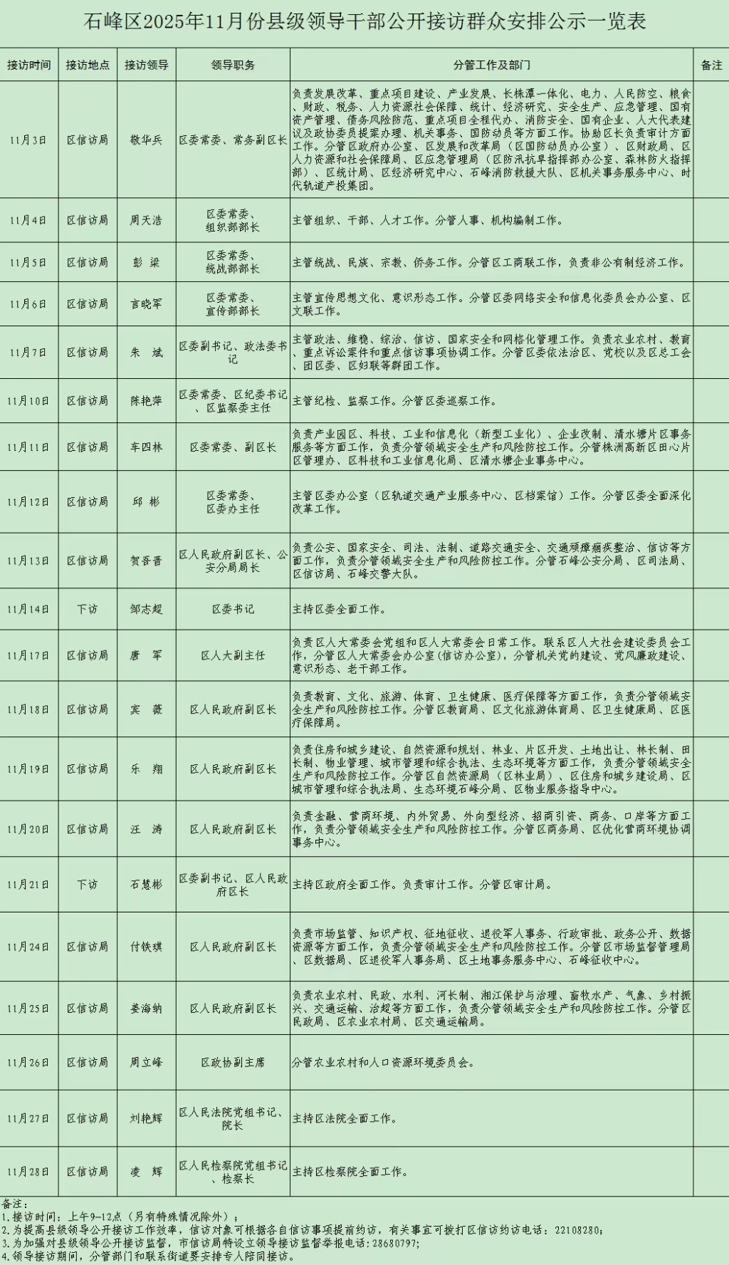 为进一步密切联系群众,畅通信访渠道,依法及时就地解决群众合理诉求,从2022年3月1日开始,建立领导预约接访制度,每个工作日由县级领导轮流到信访部门定期公开接访。现将2025年11月份县级领导接访安排公示如下。