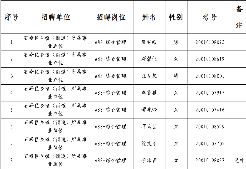 根据《2023年株洲市面向2023届高校优秀毕业生公开招聘事业单位工作人员公告》及有关规定,经网上报名、资格初审、笔试、资格复审、面试、体检、考察等程序,经研究,确定颜钰晗等8名同志为拟聘用人员,现予以公示。
